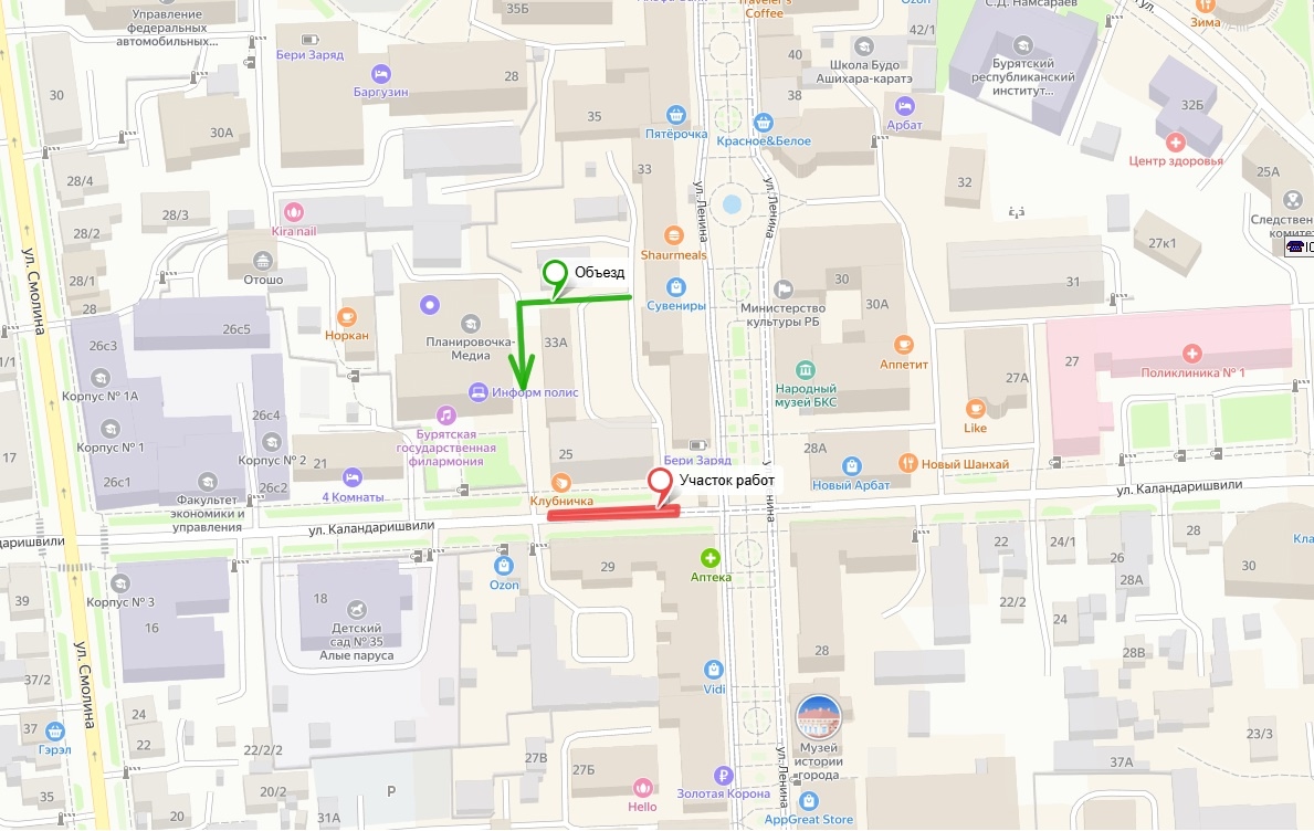 В Улан-Удэ ограничили движение на пересечении Ленина и Каландаришвили