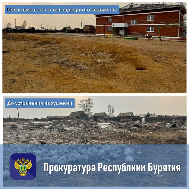 В районе Бурятии убрали незаконную свалку строительных отходов близ детской площадки