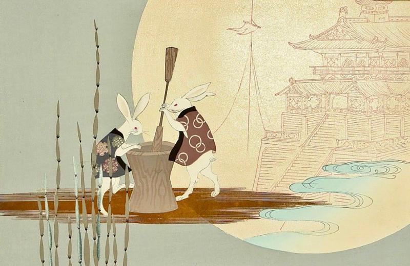 Ещё в древнейшие времена люди, разглядывая тёмные пятна на полной Луне, видели в них разные фигуры. Но если жители Европы замечали там всадника, поражающего дракона, то азиаты видели женскую фигуру (Чанъэ) или кролика, толкущего в ступке ингредиенты для эликсира бессмертия. С этими наблюдениями соединилась старинная легенда о том, как Нефритовый император (в варианте легенды — Будда) как-то раз переоделся бедным стариком и обратился к лисе, обезьяне и кролику, прося накормить его. Лиса поймала для него рыбу, обезьяна принесла фрукты, а кролик, которому нечего было дать, бесстрашно бросился в огонь, чтобы своим телом накормить голодного. Пораженный его самоотверженностью, Нефритовый император воскресил кролика и отправил его на Луну. Теперь кролик живёт в небесном дворце вместе с Чанъэ и помогает ей готовить волшебное лекарство.