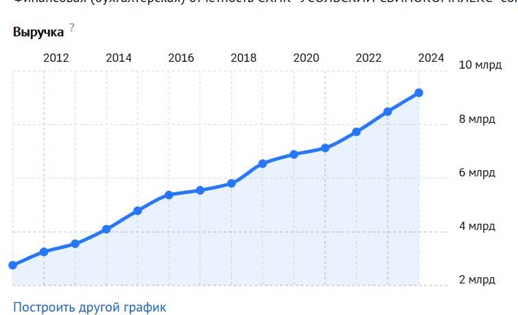 Если взглянуть на выручку принадлежащего семье экс-министра Сумарокова «Усольского свинокомплекса» по годам, то, справедливости ради, нужно отметить ее рост и до назначения Ильи Павловича министром. Но нельзя не подчеркнуть и тот факт, что растут показатели неуклонно. В 2012 году было 3,3 миллиарда, в 2024-м – 9,2 миллиарда рублей.